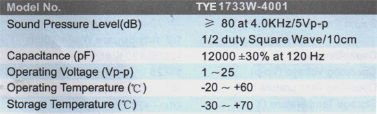 - 产品型号:TYE1733W-4001