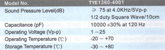TYE1360压电蜂鸣器