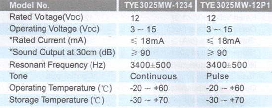 TYE3025M压电蜂鸣器
