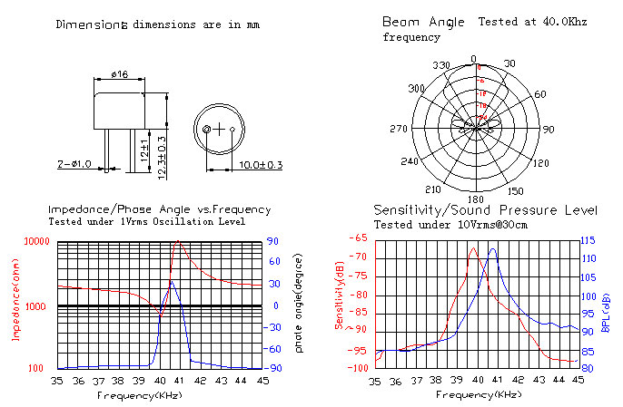 | Transmitting sound Pressure Level at resonant frequency;0dB re 0.0002μbar per 10Vrms at 30cm | 113dB | ||