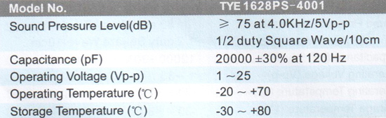 TYE1628PS压电蜂鸣器